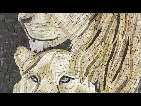 Created using the enduring art of ancient mosaic craftsmanship, this striking wall piece portrays two lions, eternal emblems of strength, protection, and majesty. Rendered in a refined geometric composition, the lions face each other in a powerful yet balanced stance—evoking both tension and unity.
